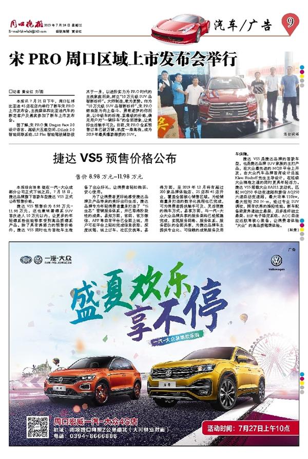 本报综合消息 继在一汽-大众成都分公司正式下线之后,7月18日,捷达品牌旗下首款车型捷达 VS5正式公布预售价格。