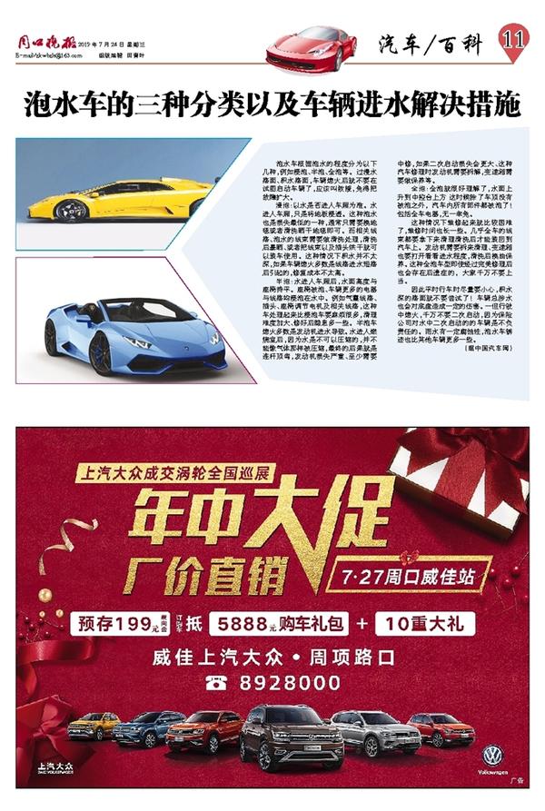 泡水车根据泡水的程度分为以下几种,例如浸泡、半泡、全泡等。过漫水路面、积水路面,车辆熄火后就不要在试图启动车辆了,应该叫救援,免得把故障扩大。