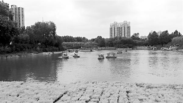 8月11日,天气凉爽,周口人民公园落花湖里游船穿梭。如今的周口人民公园干净整洁,水清岸绿,极像一幅美丽的图画,市民陶醉其中,流连忘返。
