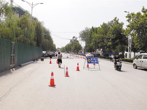 当日,记者在交通大道与永丰路交叉口看到,施工人员正在摆设路标,设立施工围挡,并在交通大道上设立施工绕行提示。附近居民陈先生说:“这两处铁路道口附近的路面坑洼不平,车辆经过时要减速慢行,以防剐蹭底盘。”