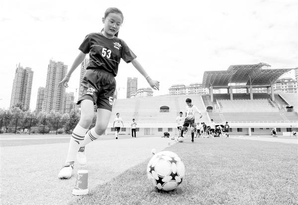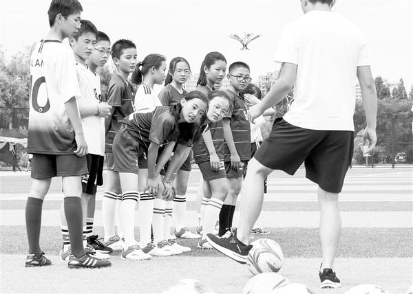 暑假期间,甘肃省临夏市的不少小学生通过参加足球俱乐部或夏令营活动,享受足球运动的快乐。新华社记者 马宁 摄