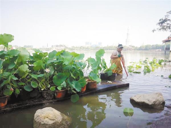本报讯 连日来,走进周口公园的市民发现如意湖内有工人正在忙碌着。原来工人正在如意湖内种植荷花和睡莲(如图),这是周口市园林管理处为满足市民的欣赏需求,提升周口公园形象的具体举措。