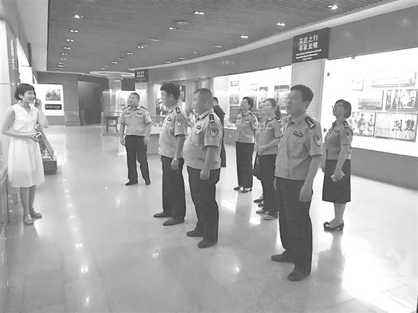 近日,市公安局交通管理支队法制科党支部全体民警赴扶沟县吉鸿昌纪念馆,开展主题党日活动。图为党员民警接受红色教育。记者 姬慧洋 摄
