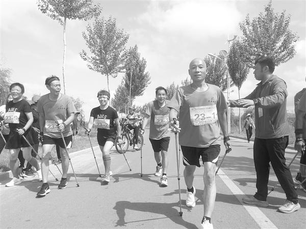 8月20日上午,2019年全国老年人持杖健走交流活动在内蒙古乌海市开幕,吸引了来自全国38支代表队652名持杖健走爱好者参与。我市老年人体育协会共选派10人参赛。图为我市持杖健走爱好者正在进行户外穿越项目的交流。