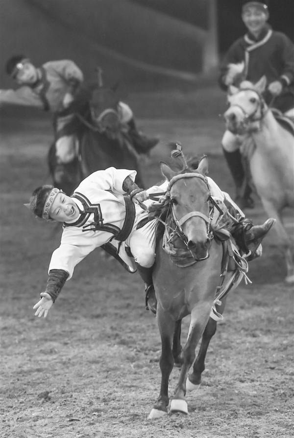 日前,由内蒙古民族艺术剧院出品的大型马舞剧《千古马颂》在内蒙古呼和浩特市上演。该剧以马术表演为主,综合运用了舞蹈、器乐、杂技等艺术元素,融合了现代高科技舞台技术,以全新艺术形式生动演绎了蒙古民族与马相遇、相识、相伴、不离不弃、生死与共的情感历程,体现了人、马与自然和谐共存的精神。