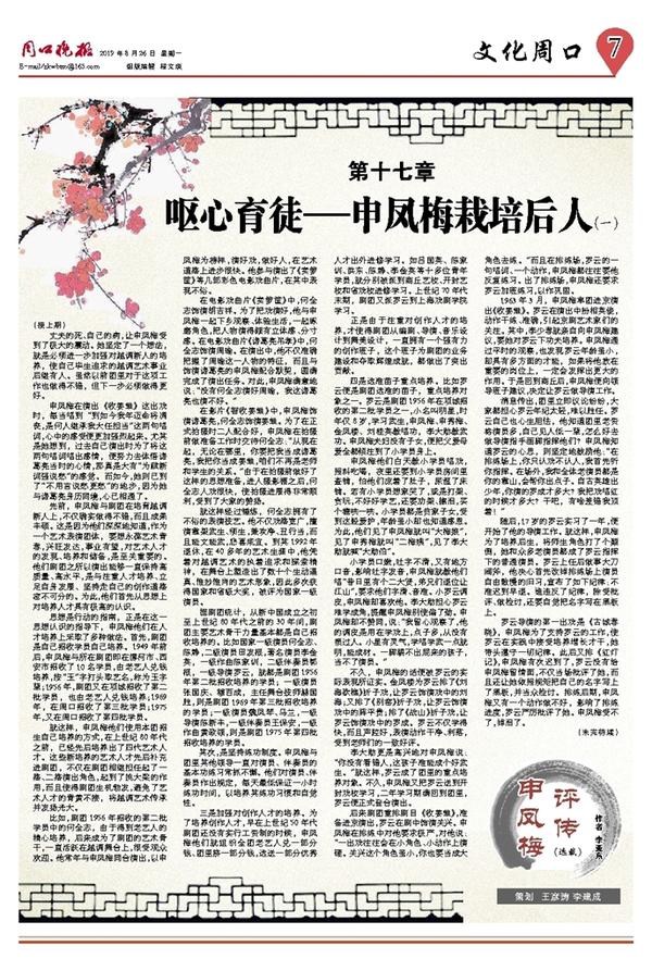 小学员口嫩,吐字不清,又有地方口音,影响吐字发音,申凤梅就教他们唱“昔日里有个二大贤,弟兄们退位让江山”,要求他们字清、音准。小罗云调皮,申凤梅却喜欢他。李大勋担心罗云难学成角,提醒申凤梅别使偏了劲。申凤梅却不赞同,说:“我留心观察了,他的调皮是用在学戏上,点子多,从没有损过人。小星有灵气,学唱学武一点就明,能成材。一脚踢不出屁来的孩子,当不了演员。”