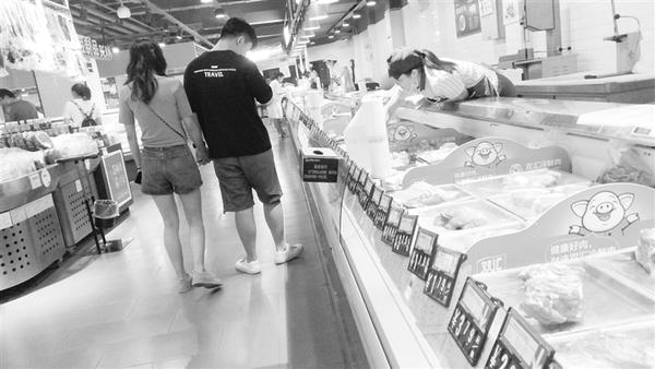 当天下午,记者在中心城区建新路一大型超市里看到,在往日拥挤的猪肉柜台前,只有几位市民在选购。柜台面上价格标签显示:普通五花肉1千克35.6元,精瘦肉1千克49.6元。随后,记者在府苑街另一超市里看到,五花肉每千克48元,精瘦肉每千克50元。