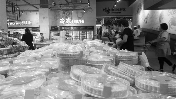 8月26日,市民在中心城区七一路与中州大道交叉口附近的一座大型超市里选购月饼。