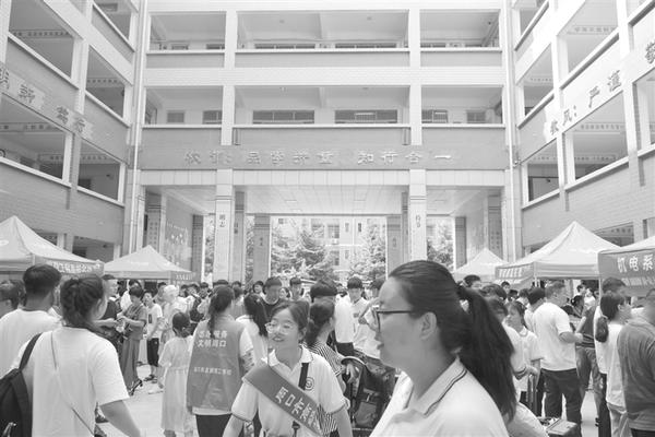 又到一年开学季。8月25日上午,周口颍河高级中学2019级新生正式报到,一大早,该校广场上就挤满了拖着大包小包的学生和家长。据了解,今年有近千名新生进入该校学习。该校实施“文昌教育理念”,采取“衡水教学模式”,为一批中招成绩不理想的学生找到了一条通往理想大学的道路,这种办学模式深受学生家长好评。记者 刘华志 摄