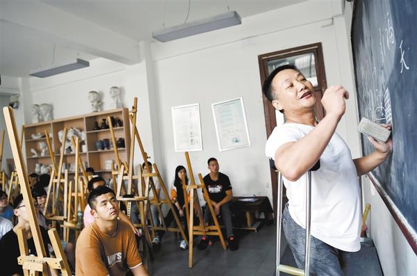 陕西省城市经济学校计算机平面设计专业的美术老师王旭阳在给新入学的学生讲授绘画基础知识(9月9日摄)。