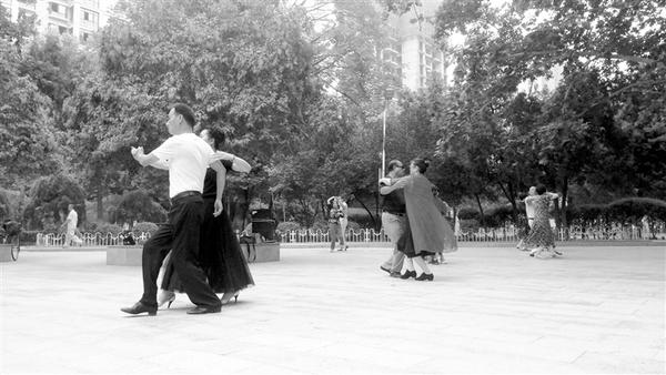 9月12日,中心城区周口人民公园内,几名老同志正在跳交谊舞。近年来,随着生活水平的提升,我市离退休老人对精神生活的追求越来越高,离退休生活更加丰富多彩。记者 关秋丽 摄