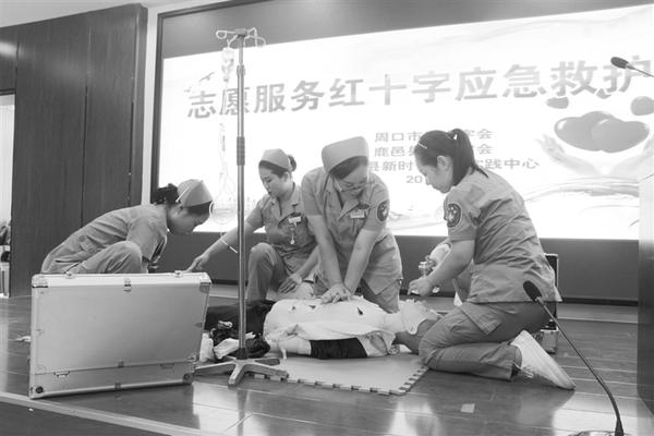 9月14日是世界急救日,市红十字会应急救护培训班在鹿邑开班,鹿邑县人民医院、鹿邑县真源医院两支急救技术团队分别进行了心肺复苏和外伤救援演示。市红十字会应急救护宣讲师尚艳清和严巧歌详细介绍了心肺复苏、骨折、创伤救护等急救常识。