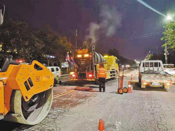 9月20日晚,记者在八一大道北段看到,道路综合养护车、压路机、运输车、圆周切割机等车辆和设备早已到位,市政工人正在施工(如图)。从切割路面到恢复通车,一段路不到两个小时就完成了任务。从外观看,新更换的窨井盖与以前的并无明显差别。