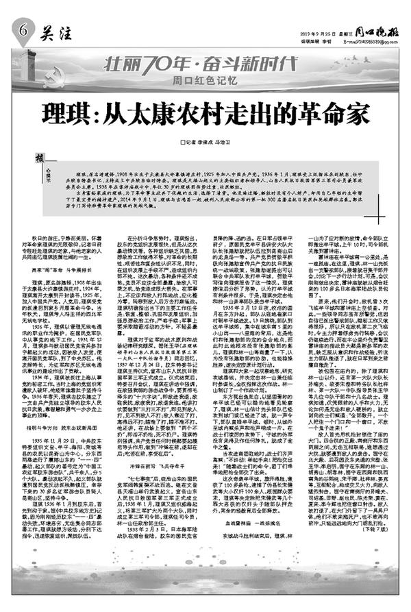 理琪,原名游建铎,1908年出生于太康县大许寨镇游庄村。1924年,理琪离开太康到开封读书,1925年,加入中国共产党。入党后,理琪受党的派遣回到家乡开展革命斗争。当年秋天,理琪考入冯玉祥的西北军无线电学校。