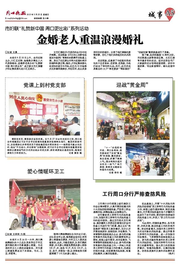 本报讯9月28日上午,由市妇联主办,川汇区妇联、金海路办事处人大代表联络站、宏德养老承办的“礼赞新中国 周口更出彩”进万家文艺汇演暨夕阳红集体婚礼在川汇区举办。