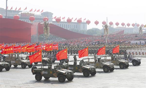 战旗方队接受检阅 新华社记者 殷刚 摄