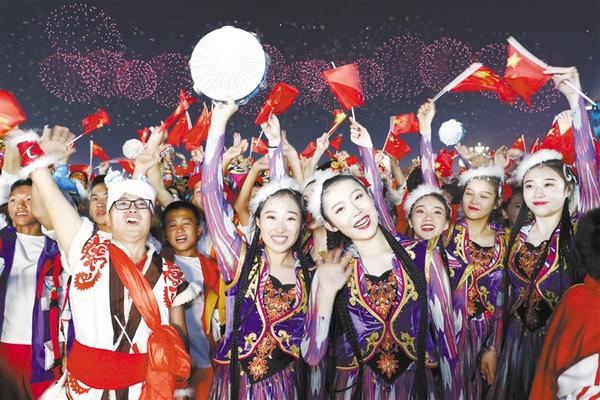 焰火联欢美如画 群众游行嗨翻天