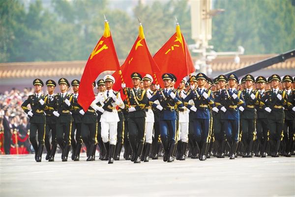 仪仗方队首次同时高擎党旗国旗军旗国庆受阅