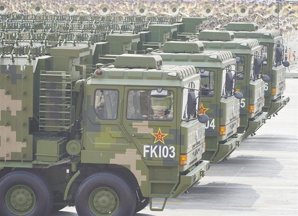 方队展示的武器装备是我国自行研制的新型潜射、舰射反舰巡航导弹YJ-18/18A。这型导弹具有射程远、威力大等特点,是人民海军反舰慑敌的中坚力量。