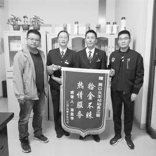 10月6日,旅客黄先生乘坐北京至周口的K401次列车,于7日8时到达周囗火车站。因着急参加朋友的婚礼,黄先生下车时遗忘了钱包,钱包内装有现金2000余元、数张银行卡、社保卡和身份证等。出火车站后,黄先生才发现钱包忘在列车上,这时K401次列车已经离开火车站,于是黄先生拨打铁路12306求助。随后,铁路12306客服告诉黄先生,他们已通知列车长,会在1天内回复他。之后,黄先生又向周口火车站工作人员求助。周口火车站客运值班员王纪文了解情况后,立刻与K401次列车长联系。没多久,黄先生的钱包就找到了。