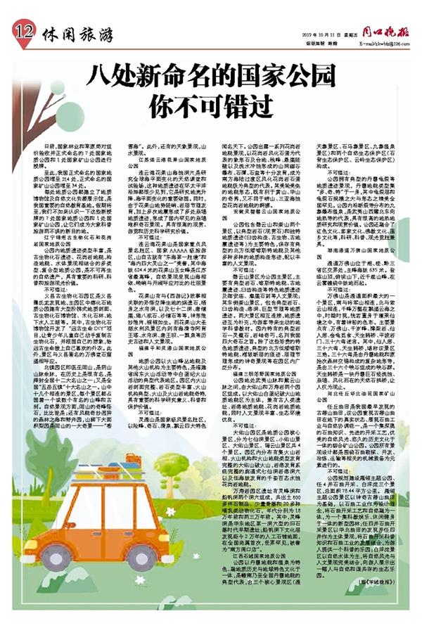 至此,我国正式命名的国家地质公园增至214处,正式命名的国家矿山公园增至34处。