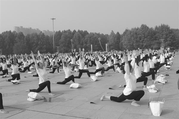 前屈使人谦卑、后弯使人开放、扭转使人纯净、支撑使人坚毅、倒立使人勇敢……活动现场,跟着舒缓的音乐以及瑜伽老师的动作讲解,近千名女职工认真地完成每一个动作,体验瑜伽独特的净化心灵的健康理念。