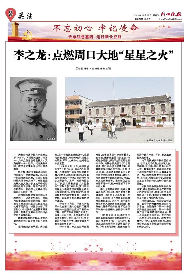采访结束后,郭玉洁告诉记者,综合分析大量的党史资料可以看出,淮阳是周口第一个中国共产党组织诞生地、第一个中国共产主义青年团组织诞生地、第一个中共党员活动地。自己作为一名党史研究工作者,深感责任重大,一定不辜负组织期盼,积极做好李之龙革命活动旧址的研究和保护工作。