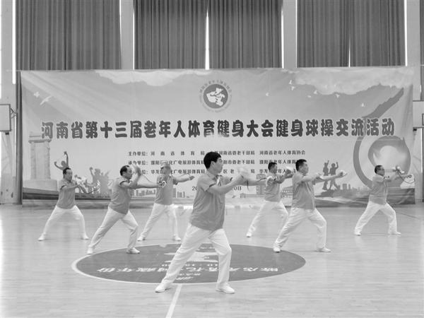 本次交流活动是本届老健会最后一个项目,在濮阳市华龙区孟轲三中篮球馆举行,共吸引来自全省22个单位34支代表队400余名健身球操爱好者参与。我市老体协选派的2支代表队20名运动员,分别参加了规定套路和自编套路的展示。