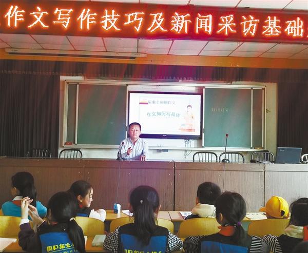 10月18日下午,由周口报业小记者中心组织开展的“新闻写作讲座”在淮阳县实验小学举行,周口日报记者任富强用通俗易懂的语言,深入浅出地传授作文怎样写出彩以及新闻写作的干货,30余名小记者到场聆听。