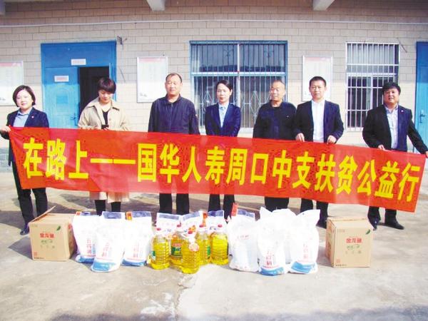 本报讯 10月17日,是第六个国家扶贫日。当日,国华人寿周口中支联合川汇区城南办事处深入后村、中村行政村开展了系列扶贫公益行捐赠慰问活动。