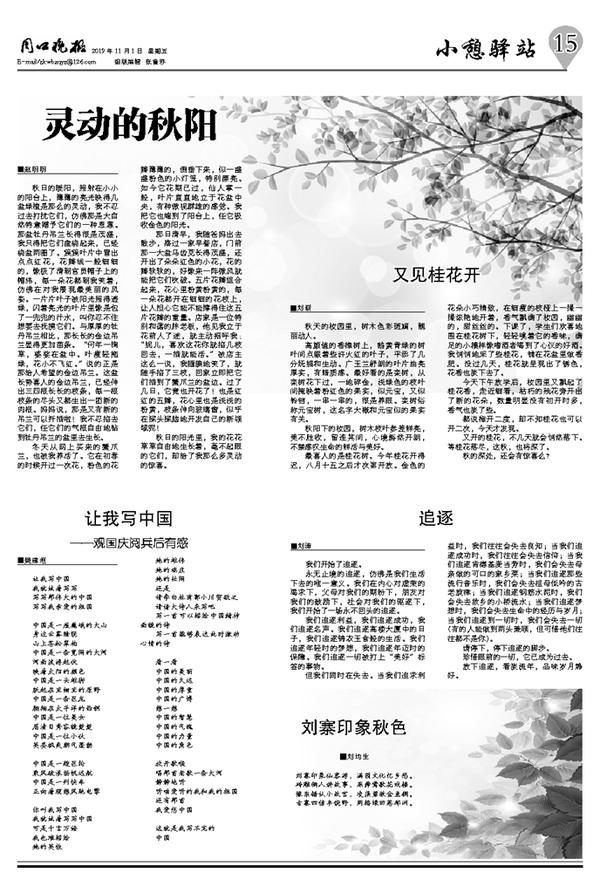 秋阳下的校园,树木枝叶参差鲜亮,美不胜收,留连其间,心境豁然开朗,不禁感叹生命的鲜活与美好。