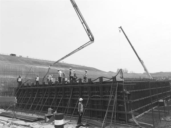 当日上午,沈丘航运枢纽项目施工现场一派繁忙,各项工作井然有序,工人们正在为枢纽底部一组底板浇灌混凝土。该项目位于沙颍河沈丘县新安集镇三大夫营村至下溜村段北岸。施工单位项目总承包部常务副经理王谦告诉记者,他们于今年4月底进驻工地,经过半年的精心组织、科学施工,目前,项目已完成沈丘船闸和郑埠口复线船闸的主体结构土方开挖工作,此次沈丘枢纽底板首次浇筑混凝土,标志着沈丘航运枢纽项目正式开始主体结构施工。