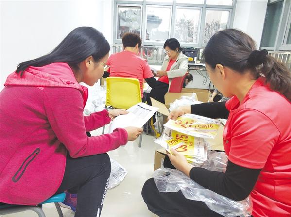 11月10日,周马组委会工作人员正式入驻2019周马赛事的起终点周口市体育中心,开始赛前最后准备工作,这标志着2019周马进入倒计时。据了解,本届周马共有13550人报名参赛,其中男子8228人,女子5322人。图为工作人员在核对比赛号码布。 记者 郭坤 摄