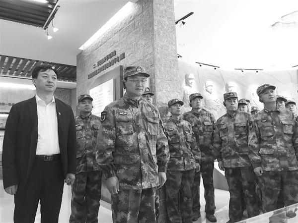 缅怀革命先烈,重温红色记忆。在杜岗会师纪念馆展厅内,军分区官兵依次参观了“东进序曲”“会师杜岗”“挥师东进”“丰功伟绩”“廉政教育”“走进新时代”6个主题展厅,讲解员的讲解和图文资料把大家带回到那段战火纷飞的峥嵘岁月(如图)。