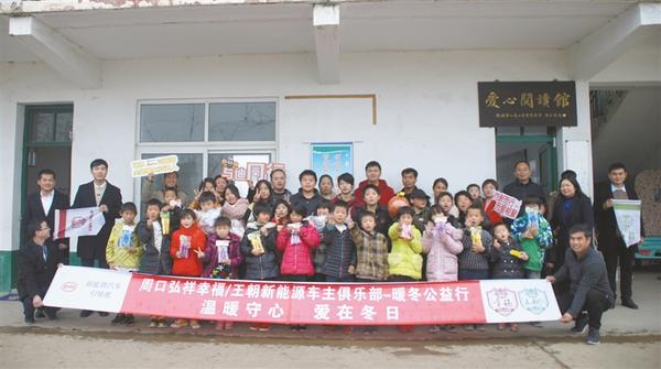 本报讯 11月24日,周口弘祥比亚迪4S店联合广大车主以及爱心人士,带着学习、生活、保暖用品等助学物资前往商水县正生爱之学校,举行弘祥比亚迪车主俱乐部暖冬公益行活动。他们鼓励孩子们刻苦学习,为孩子们送去初冬的温暖。
