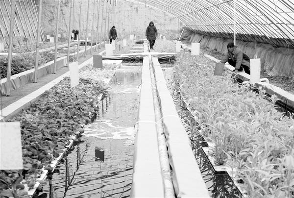 11月27日,工作人员在开封市祥符区西姜寨乡鱼菜共生基地管护蔬菜。
