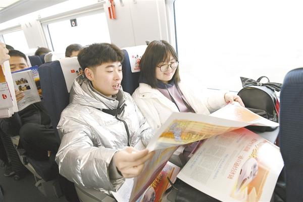 12月1日,在G6626次列车上,市民争相阅读《周口日报》号外。记者 王映 摄