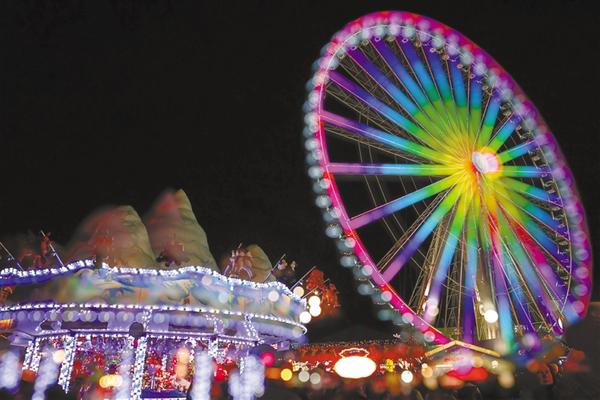 这是12月1日在英国伦敦“冬日仙境”圣诞市场拍摄的摩天轮。