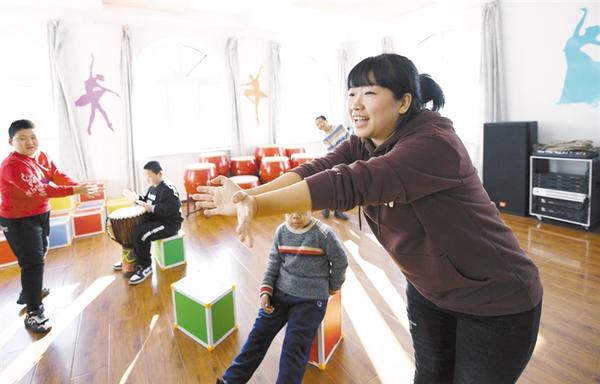 牡丹江市特殊教育学校有60余年建校历史,目前在校学生一百多名,学校近年不断完善康复教育,拓宽课程设置,在校本教材方面进行了创新。“我们在律动课里加入了奥尔夫音乐、柯达伊节奏练习以及声势练习等内容。”张娜告诉记者,“律动课节奏练习时,我们尝试加入非洲鼓、大红鼓等,这些都是为了孩子们老师后学的。”