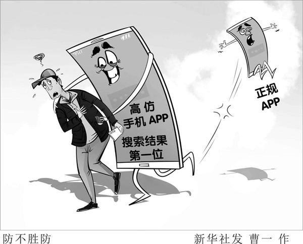 网上转账缴费、处理罚单、买火车票……随着移动互联网的发展,越来越多的人习惯用手机APP处理各种事务。记者调查发现,在手机应用市场中,一些通过相近名称、类似图标制作的高仿手机APP令人难辨真假,给不少用户造成财产损失。