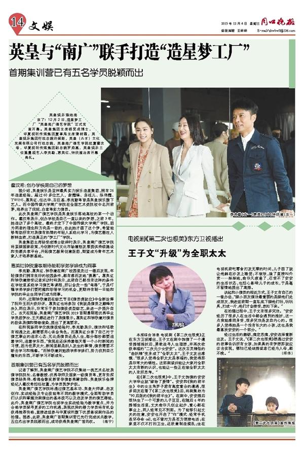 记者了解到,英皇南广演艺学院不仅集结一流艺术名校表演学院院长、名誉教授、优秀导师及国家一级演员等,更有资深演员杨英伟、香港金像奖新晋导演彭秀慧助阵、英皇娱乐金牌经纪人霍汶希担任校董,为学员筑梦护航。