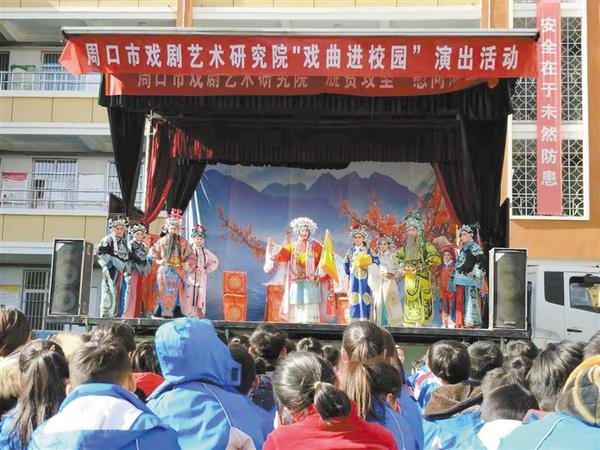 近日,周口市戏剧艺术研究院“戏曲进校园”演出活动走进周口纺织路小学,艺术家倾情的表演,让学生感受到豫剧博大精深的独特魅力。此次“戏曲进校园”活动,激发了学生对戏曲文化的兴趣和求知欲,对传统文化的传播和继承具有积极意义。通讯员 吴艳侠 摄