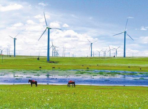 正是盛夏时节,骄阳似火。这天,午饭吃得迟了些,从呼和浩特市出发到辉腾锡勒草原,得坐约三个小时的大巴。将近辉腾锡勒草原,远远地便可看见密密麻麻的风车,像草原卫士一样矗立在那里,显得威武雄壮。风车间或转动长长的风叶,又像是在欢迎我们这些远方的客人。到达草原时,已是傍晚时分,落日余晖洒在大草原上,绚丽多姿。远处有一群牛羊未归圈,还流连在开满小花的草丛中“浅吟低唱”。我蓦然忆起了南北朝时期的一首诗:天苍苍,野茫茫,风吹草低见牛羊。那份恬静的美,用任何华丽词藻来形容,都显得苍白。