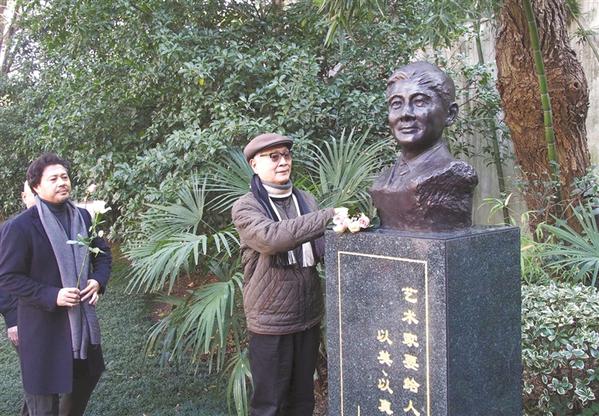 12月10日,已故著名电影表演艺术家赵丹的铜像在上海电影演员剧团落成,铜像基座上镌刻着“艺术家要给人以美、以真、以幸福——赵丹”的字样。
