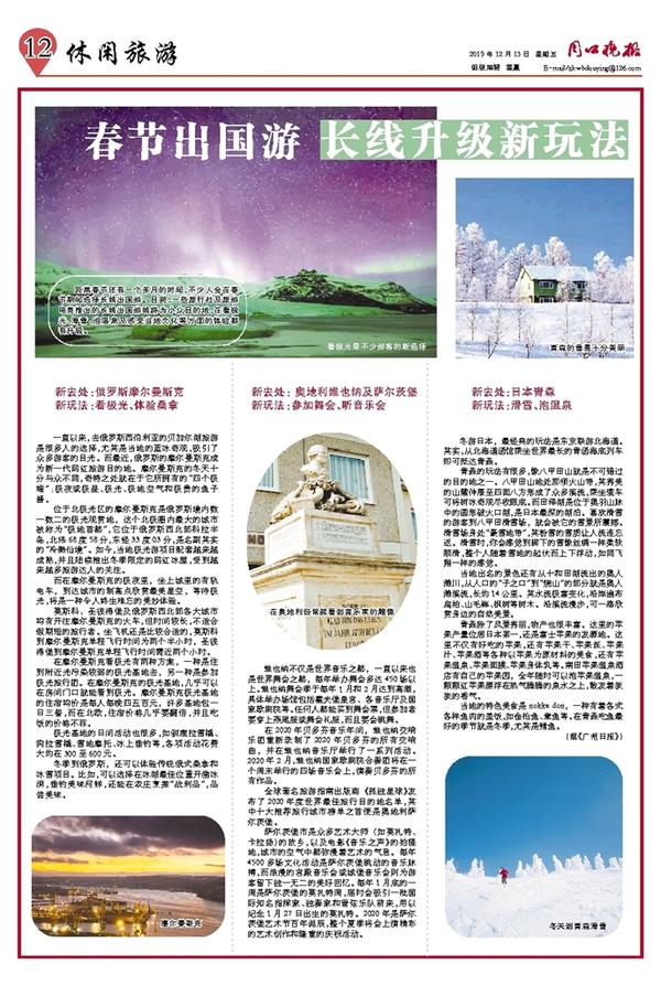 距离春节还有一个多月的时间,不少人会在春节期间选择长线出国游。目前,一些旅行社及旅游电商推出的长线出国游线路为小众目的地,在看极光、滑雪、泡温泉及感受当地文化等方面的体验都有升级。