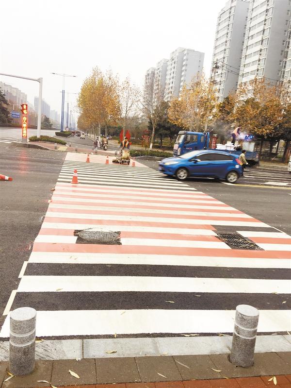 据了解,除这个路口外,大庆路与文昌大道交叉口也施划了红白相间的斑马线。工作人员告诉记者,这种斑马线不但能起到提醒机动车驾驶人提前减速停车让行的作用,还能起到引导行人自觉走斑马线的作用。 记者 范小静 摄