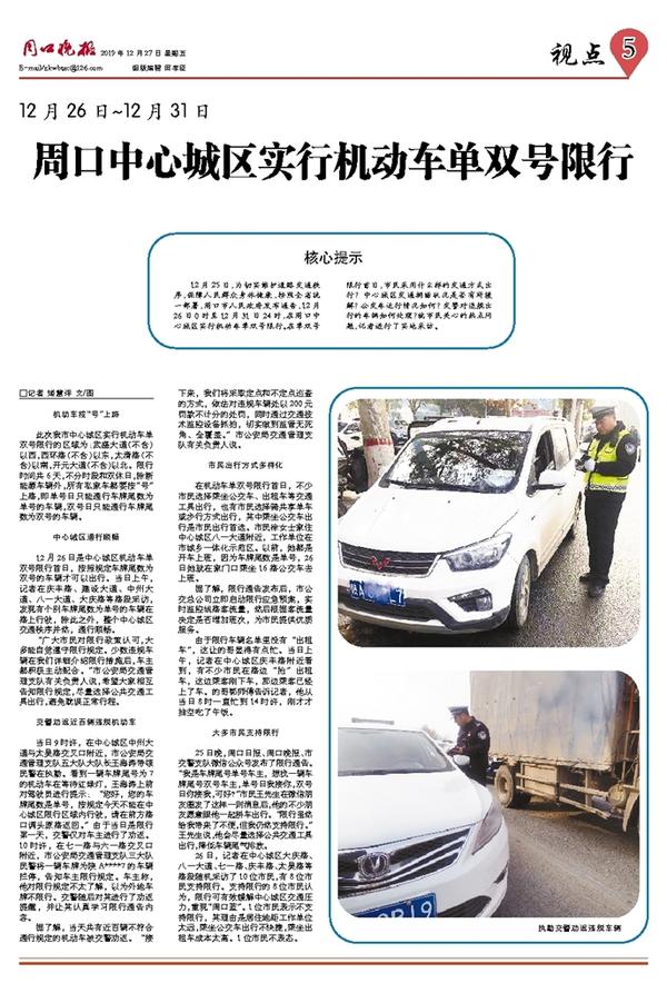 25日晚,周口日报、周口晚报、市交警支队微信公众号发布了限行通告。“我是车牌尾号单号车主,想找一辆车牌尾号双号车主,单号日我接你,双号日你接我,可好?”市民王先生在微信朋友圈发了这样一则消息后,他的不少朋友愿意跟他一起拼车出行。“限行虽然给我带来了不便,但我仍然支持限行。”王先生说,他会尽量选择公共交通工具出行,降低车辆尾气排放。