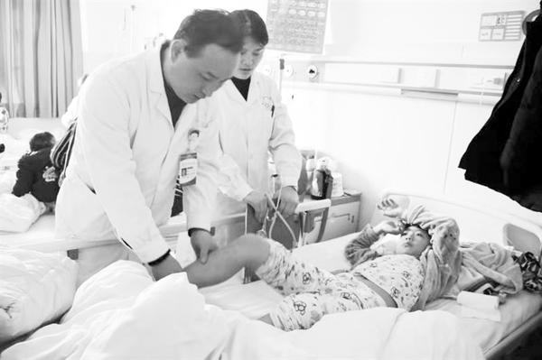 近日,郑州大学第一附属医院专家教授故乡行·项城站活动举行,郑大一附院20多名专家走进项城,开展义诊活动。图为郑大一附院PICU小儿内科主治医师马威在项城市人民医院儿科病房为患儿诊治。