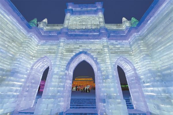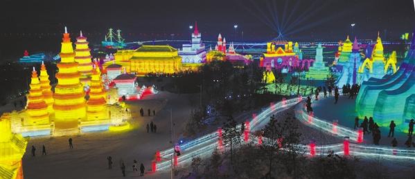 核心提示:目前世界上规模最大:1.08平方公里;体量最大:总用冰雪量超过30万立方米;最大冰奥运火炬:21米高;最长冰滑梯:420米长;最大雪雕群组:157米长“礼赞七十年”。