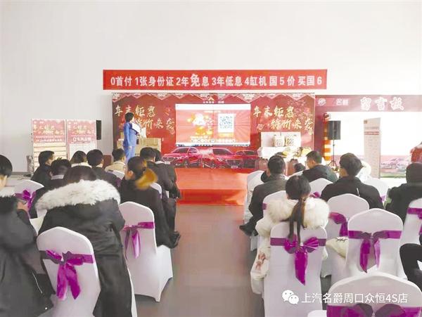 2019年12月28日下午,周口众恒年末巨惠特价来袭活动在北环名爵旗舰店展厅隆重举行,来自周口区域的新老客户、新闻媒体记者及周口众恒集团名爵店负责人共同参加了活动。图为活动现场。